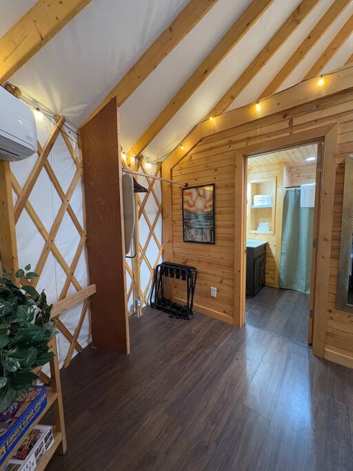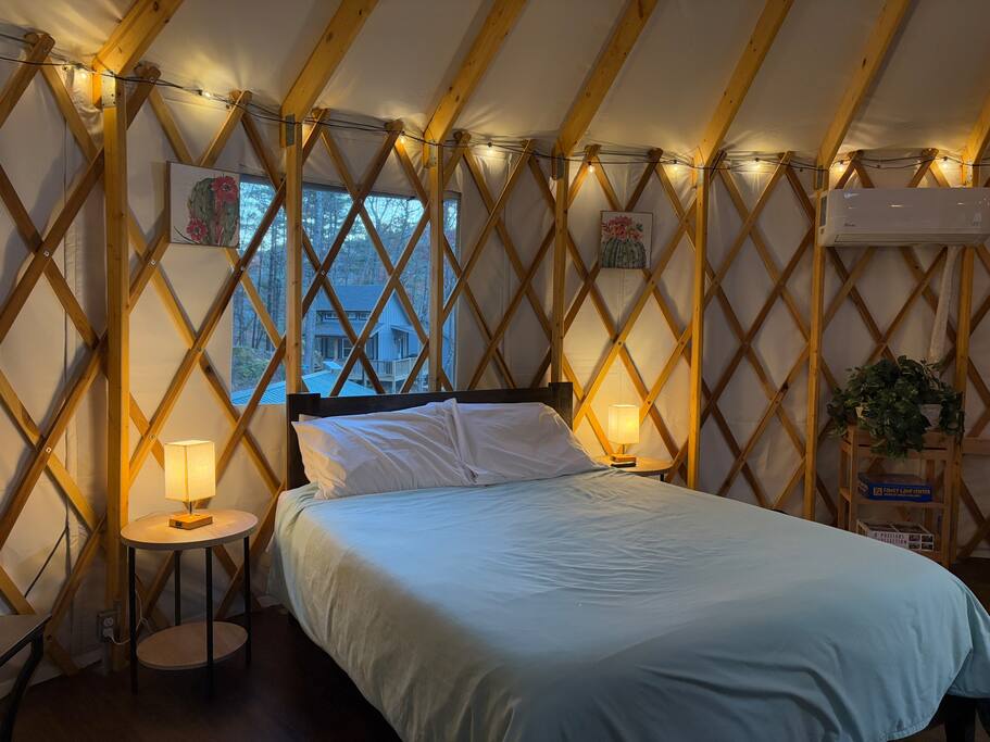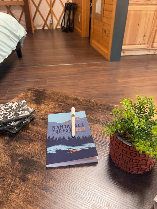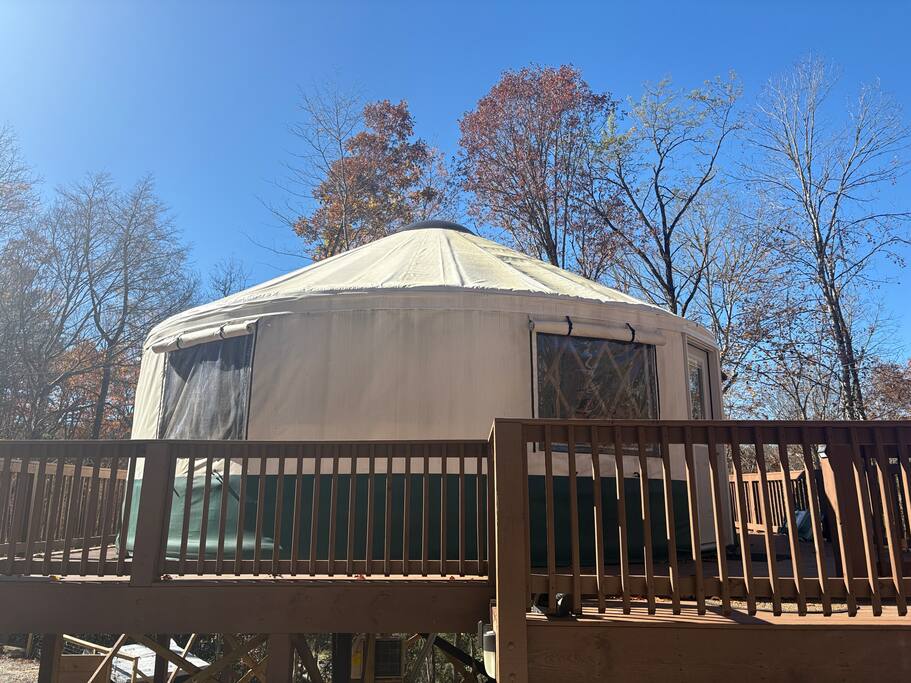 Nestled in the heart of Nantahala, the Pala Chino Yurt is the perfect place to relax and reconnect with nature. Enjoy stunning forest views, watersports on Lake Nanatahala, take a hike on Bartram Trail, have a coffee from your private deck, or curl up by the fire with a good book. Our yurt is fully equipped with everything you need for a comfortable stay, including a kitchenette, full-size bathroom and shower, queen-size bed, and a futon sofa. Whether you're looking for a romantic getaway, attending a wedding nearby, or enjoying a family vacation, our yurt is the perfect place to create lasting memories. The half-acre property has plenty of parking and turnaround space (up to three vehicles allowed), a 10 foot picnic table, large fire pit, and private outdoor deck space. Vehicles with low ground clearance and motorcycles are not recommended, as the road and driveway up the hill are gravel. Trailers are prohibited. Inside, you’ll find the queen size bed that sleeps two adults as well as the futon sofa that sleeps one adult or two small children. The kitchenette is equipped with an apartment-style fridge and freezer, induction burner cooktop, microwave, coffee pot, and other small standard kitchen appliances. Amenities: • Large, private deck with chairs • Picnic table • Fire pit and chairs • Parking for up to 3 vehicles (no trailers allowed, four-wheel drive vehicles recommended) • Kitchenette with small refrigerator and freezer, induction cooktop, microwave, and more • Full-sized bathroom with stand-in shower and toilet • A/C and heat • Queen-size bed (sleeps 2) • Futon sofa (sleeps 1 adult or 2 children) *Please book for 3 guests so we may leave sheets for the Futon* • Linens and towels provided • Pool towels can also be provided, please message the host to request • WiFi • TV • Pet-friendly (no pet beds, bowls, or toys provided) IMPORTANT INFORMATION ABOUT THE AREA There will be NO CELL PHONE RECEPTION at the yurt and within a 10-15 mile radius of the property. Guests are encouraged to use our WiFi and turn on WiFi calling (check with your cell carrier to see if this is provided). For routing your phone maps to the yurt, please route when you leave your current location (while you still have cell service). YOU WILL LOSE SERVICE WHEN YOU’RE ABOUT 10-15 MILES AWAY. If you keep your cell phone maps routed and DON'T TOUCH IT, it will still keep your route up to the property. Specific directions and yurt location will be provided after booking. Please message us for other specific questions about the area, amenities, or availability! We look forward to hosting you in Nantahala!