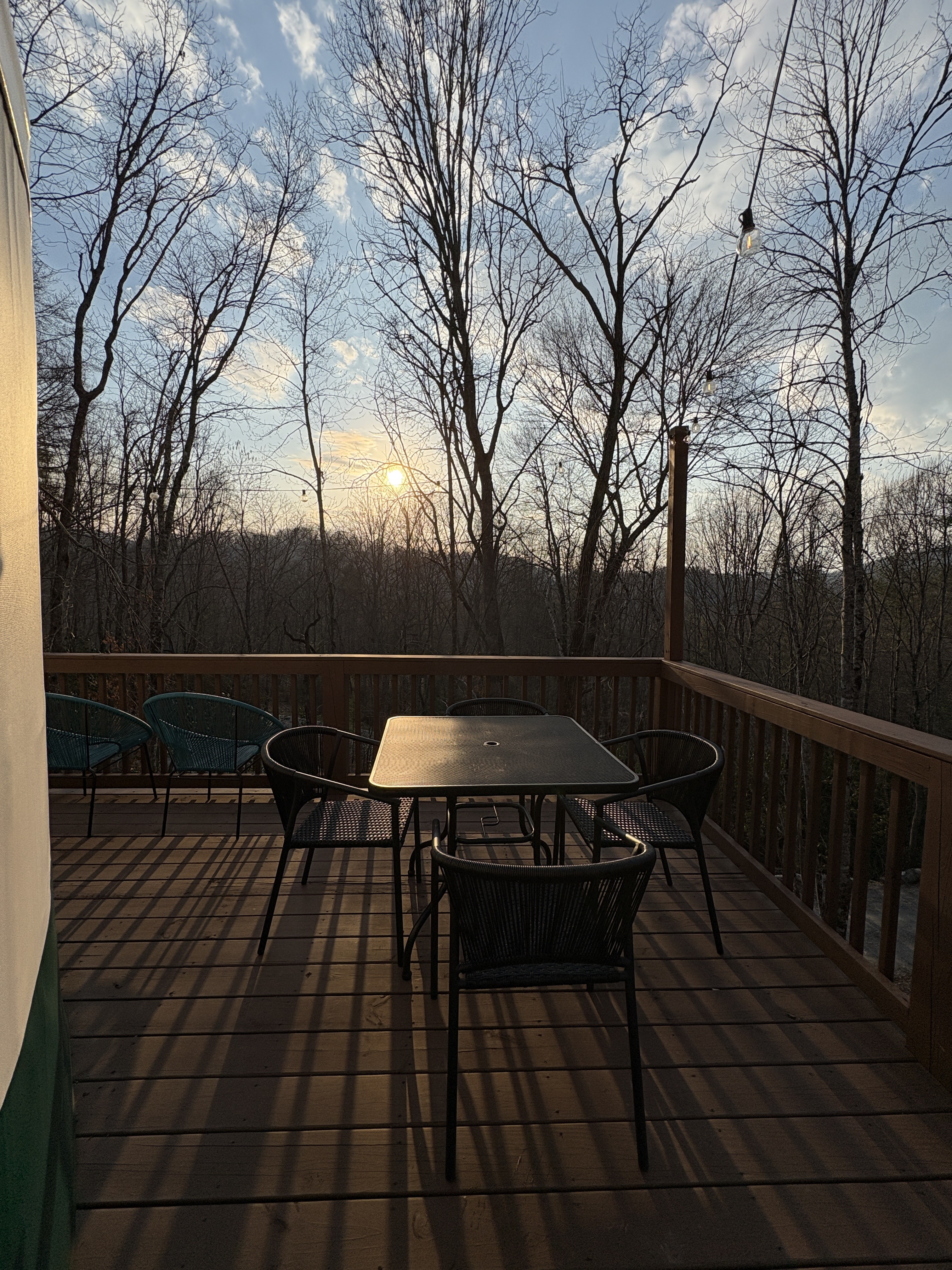 Nestled in the heart of Nantahala, the Pala Chino Yurt is the perfect place to relax and reconnect with nature. Enjoy stunning forest views, watersports on Lake Nanatahala, take a hike on Bartram Trail, have a coffee from your private deck, or curl up by the fire with a good book. Our yurt is fully equipped with everything you need for a comfortable stay, including a kitchenette, full-size bathroom and shower, queen-size bed, and a queen-size sleeper sofa. Whether you're looking for a romantic getaway, attending a wedding nearby, or enjoying a family vacation, our yurt is the perfect place to create lasting memories. The half-acre property has plenty of parking and turnaround space (up to three vehicles allowed), a 10 foot picnic table, large fire pit, and private outdoor deck space. Vehicles with low ground clearance and motorcycles are not recommended, as the road and driveway up the hill are gravel. Trailers are prohibited. Inside, you’ll find a queen-size bed that sleeps two people as well as a queen-size sleeper sofa that sleeps two people. The kitchenette is equipped with an apartment-style fridge and freezer, induction burner cooktop, microwave, coffee pot, and other small standard kitchen appliances. Amenities: • Large, private deck with chairs • Picnic table • Fire pit and chairs • Parking for up to 3 vehicles (no trailers allowed, four-wheel drive vehicles recommended) • Kitchenette with small refrigerator and freezer, induction cooktop, microwave, and more • Full-sized bathroom with stand-in shower and toilet • A/C and heat • Queen-size bed (sleeps 2) • Queen-size sleeper sofa (sleeps 2) *Please book for 3-4 guests so we may leave sheets for the sleeper sofa* • Linens and towels provided • Pool towels can also be provided, please message the host to request • WiFi • TV • Pet-friendly (no pet beds, bowls, or toys provided) IMPORTANT INFORMATION ABOUT THE AREA There will be NO CELL PHONE RECEPTION at the yurt and within a 10-15 mile radius of the property. Guests are encouraged to use our WiFi and turn on WiFi calling (check with your cell carrier to see if this is provided). For routing your phone maps to the yurt, please route when you leave your current location (while you still have cell service). YOU WILL LOSE SERVICE WHEN YOU’RE ABOUT 10-15 MILES AWAY. If you keep your cell phone maps routed and DON'T TOUCH IT, it will still keep your route up to the property. Specific directions and yurt location will be provided after booking. Please message us for other specific questions about the area, amenities, or availability! We look forward to hosting you in Nantahala!
